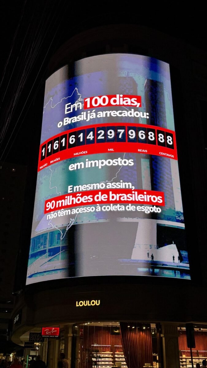Apesar disso, os dados nacionais revelam um cenário alarmante: cerca de 90 milhões de brasileiros ainda vivem sem acesso à coleta e tratamento de esgoto. O contraste entre arrecadação recorde e a precariedade de serviços básicos foi o ponto central da ação.